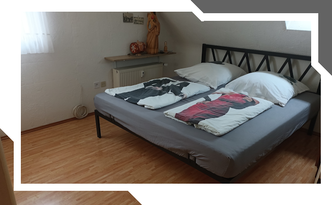 Neben dem Doppelbett steht als weitere Schlafgelegenheit ein Einzelbett, ebenfalls mit guter Federkernmatratze, zur Verfügung. Es ist ein Klappbett, könnte tagsüber auch hochgeklappt werden.